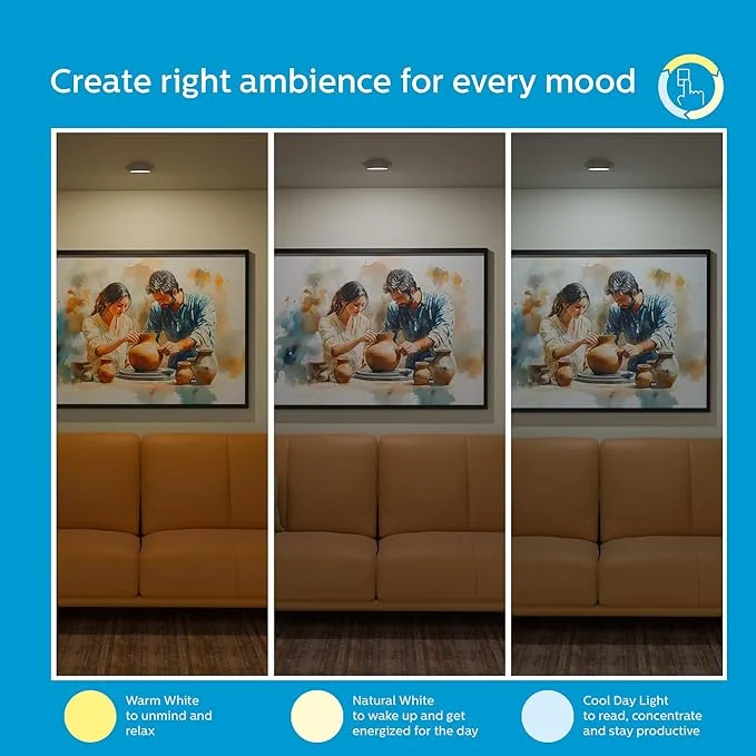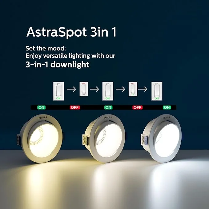Philips Aluminium 12-watt Round LED COB Spot Light|3 Colors in 1 Astra Spot LED Spotlight for Display & Decorations|Adjustable and Tiltable|Cut Out: 84mm, Color: Tunable White, Pack of 2