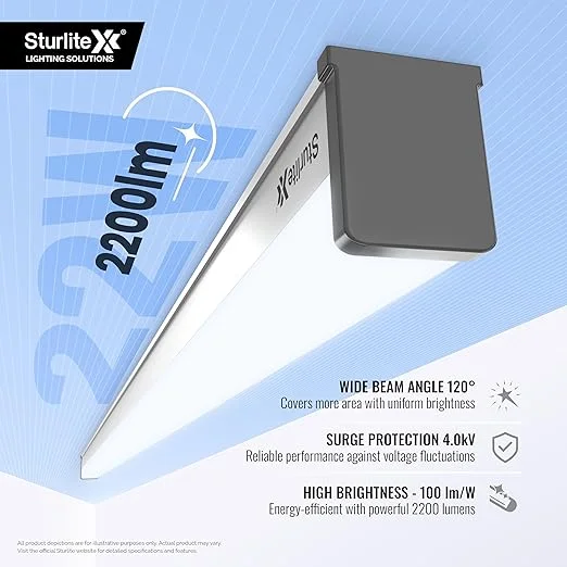 HIGH BRIGHTENESS : Sturlite battens offer high brightness with an efficiency of 2200 lumens per watt, providing both energy efficiency and powerful illumination.