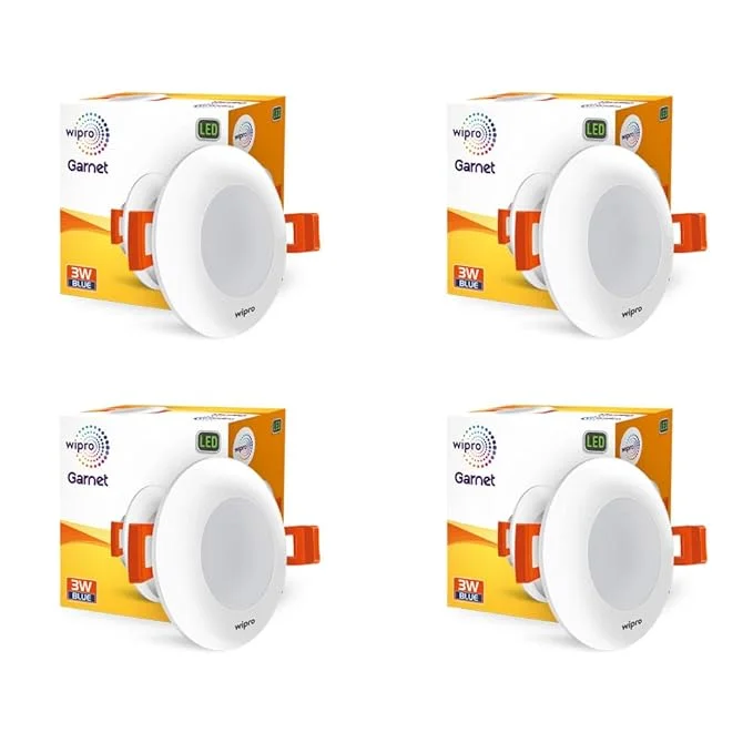 Wipro Polycarbonate Garnet 3W Led Mini Downlight for Home & Cabinet| Blue|Compact Design with 120° Beam Angle|Recessed Down Light for False Ceiling|Cutout-2.3 Inch|Pack of 4