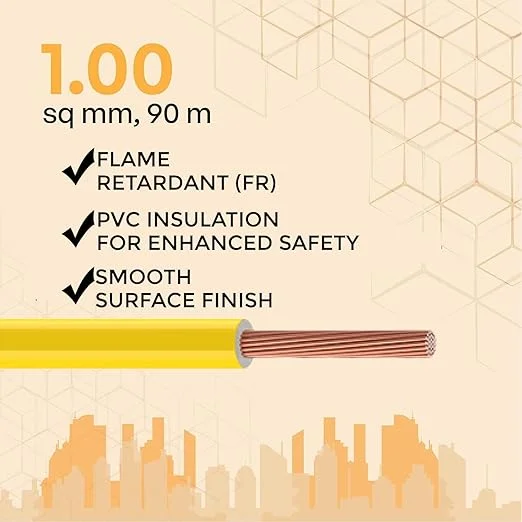 VRINDA Yellow 1mm 90 Meter Wire | FR PVC Insulated CCA Copper Electrical Cable for Home & Industrial Wiring