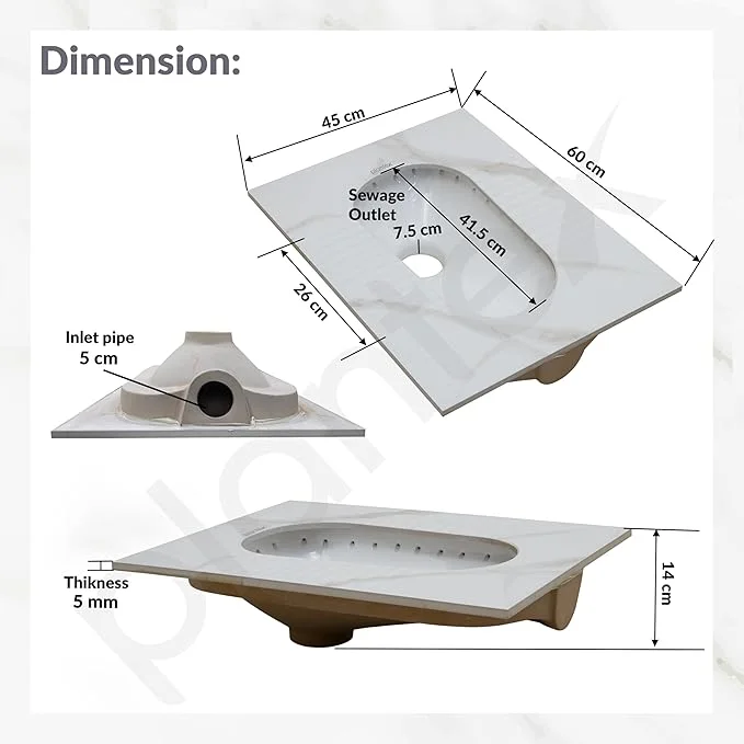 𝐏𝐚𝐜𝐤𝐚𝐠𝐢𝐧𝐠 & 𝐒𝐢𝐳𝐞: The package includes 1 piece of squating pan toilet - Made in India and the dimensions is - (l) 60.5 x (w) 45.5 x (h) 15.5 cm.