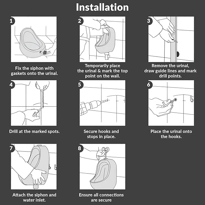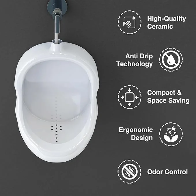 Ceramic Construction - This urinal is made from premium-quality ceramic and is incredibly resilient to fading, stains, and scratches, ensuring easy maintenance and long-lasting use.