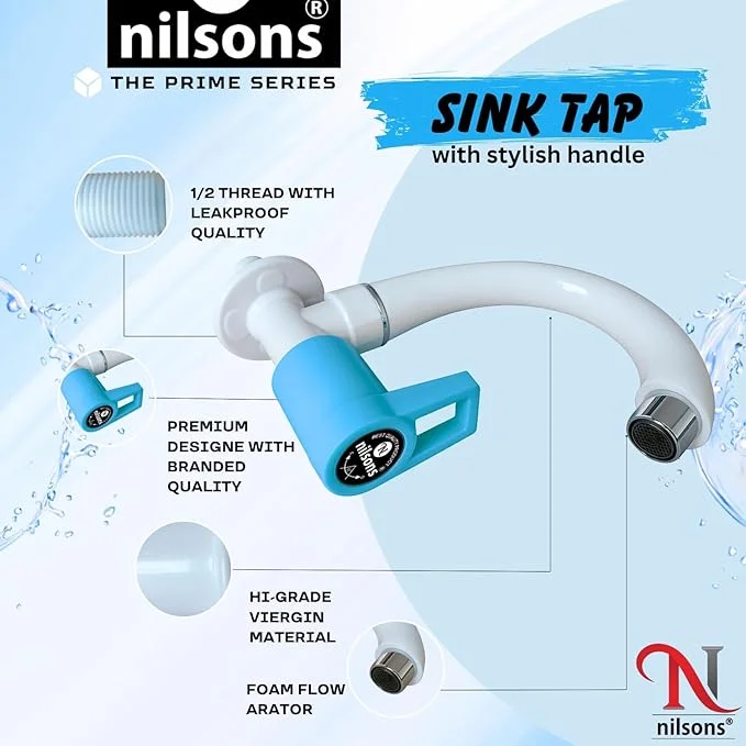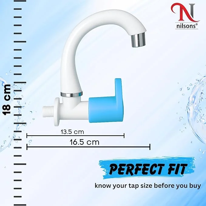 Recommended Uses For Product Sink Cock Tap Mounting Type Screw-on Finish Type Matte Material Plastic Colour White And Blue Number of Handles 1 Included Components 2 Sink Cock Tap Hole Count 1 Units Special Feature 360-degree swivel spout for versatile use, Compatible with standard 1/2 inch pipe fittings, Easy to clean and maintain, Heavy-duty, non-toxic, and rust-proof plastic, Wall mount design for space-saving installation360-degree swivel spout for versatile use, Compatible with standard 1/2 inch pipe fittings, Easy to clean and maintain, Heavy-duty, non-toxic, and rust-proof plastic, Wall mount…