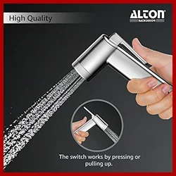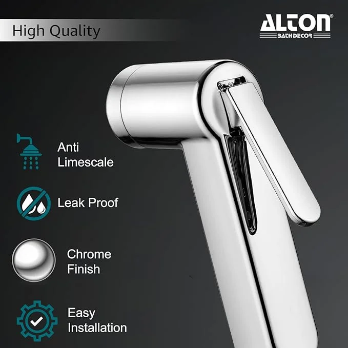 Brand ALTON Recommended Uses For Product Bathroom Mounting Type Wall Mount Finish Type Polished Material Acrylonitrile Butadiene Styrene, Stainless Steel Colour Silver (Chrome) Number of Handles 1 Included Components 1-Piece Health Faucet, 1-Piece 1.25 Mtr Hose Pipe, 1-Piece Wall Hook, 1-Piece Warranty Card Hole Count 1 Special Feature Dual Function Sprayer, Leak Resistant