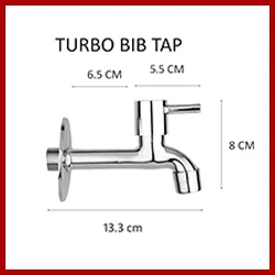 Hardware Items (Brass Disc) Stainless Steel Turbo Bib Tap Long Body for Bathroom and Kitchen with Chrome Finish and Quarter Turn Fitting (Accessories) Pack of (1)