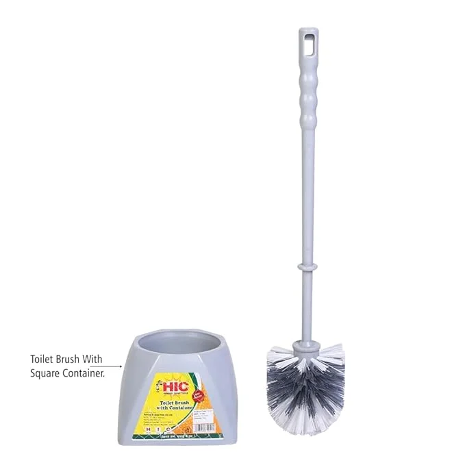 HIC HAMARA INDIA CLEAN Plastic Toilet Brush with Square Container Holder for All Types of Toilet , Standard, Multicolour YI-421