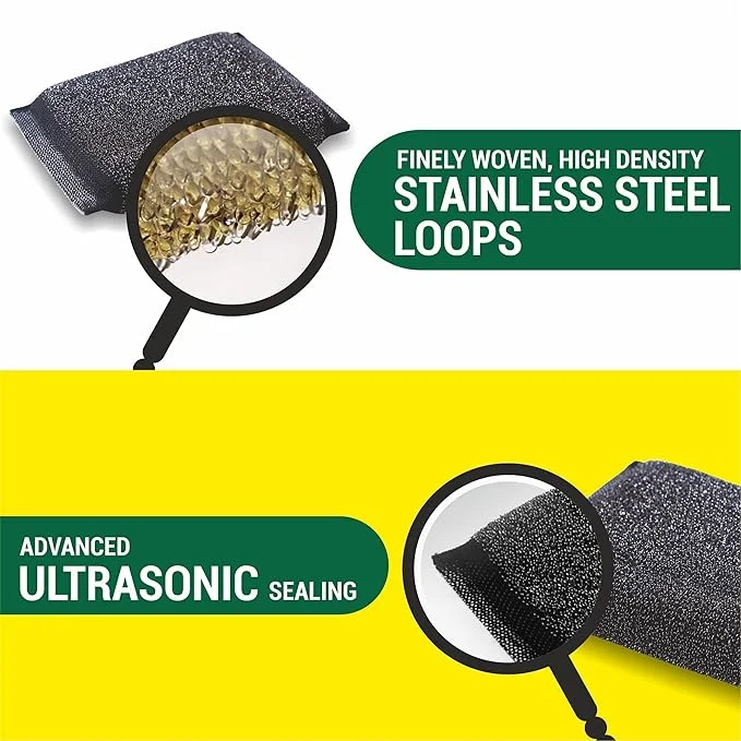 Coarse metal mesh loops create a scouring effect to clean any rust or dried substances on a dish or on your tile floor - heavy duty and durable compared to any ordinary scrubbers or sponges available
