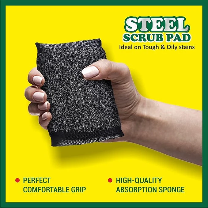 HIC Stainless Steel Scrub pad leaves your dishes spotlessly clean, no matter how dirty - with less effort than other products / Long lasting durable quality means no need for short term replacement
