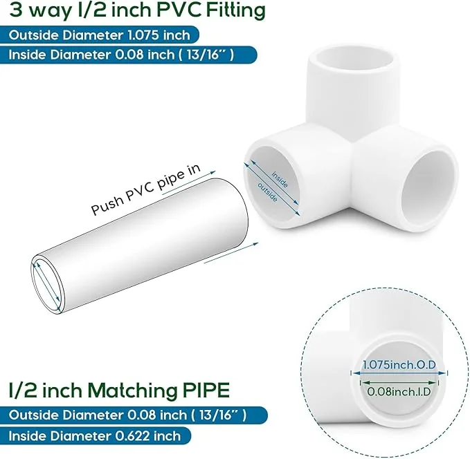 IMPACT PROOF SOLID PVC CONNECTOR——The 3-Way side-out elbows are ideal for edge, corner and center connections; The extra deep sleeve allows the pipe to be inserted further into the joint for a safer and more secure hold