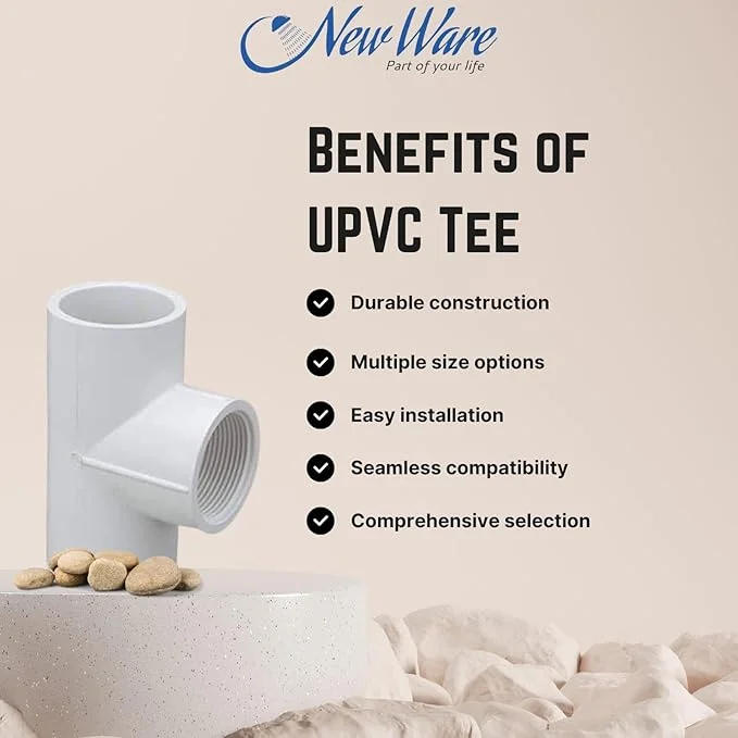 Size Small Material Polyvinyl Chloride Brand NEW WARE Colour White Item dimensions L x W x H 17 x 17 x 5 Centimeters Connector Type Tee Thread Size 1 inch Exterior Finish white Item Weight 1000 Grams Number of Pieces 5